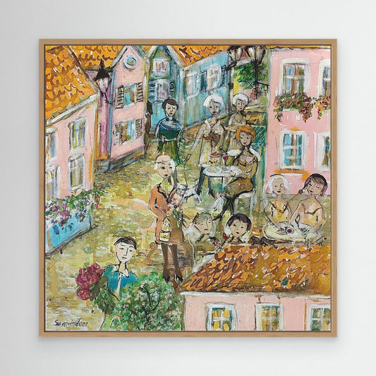 Småstadsliv - Konsttryck på canvasduk