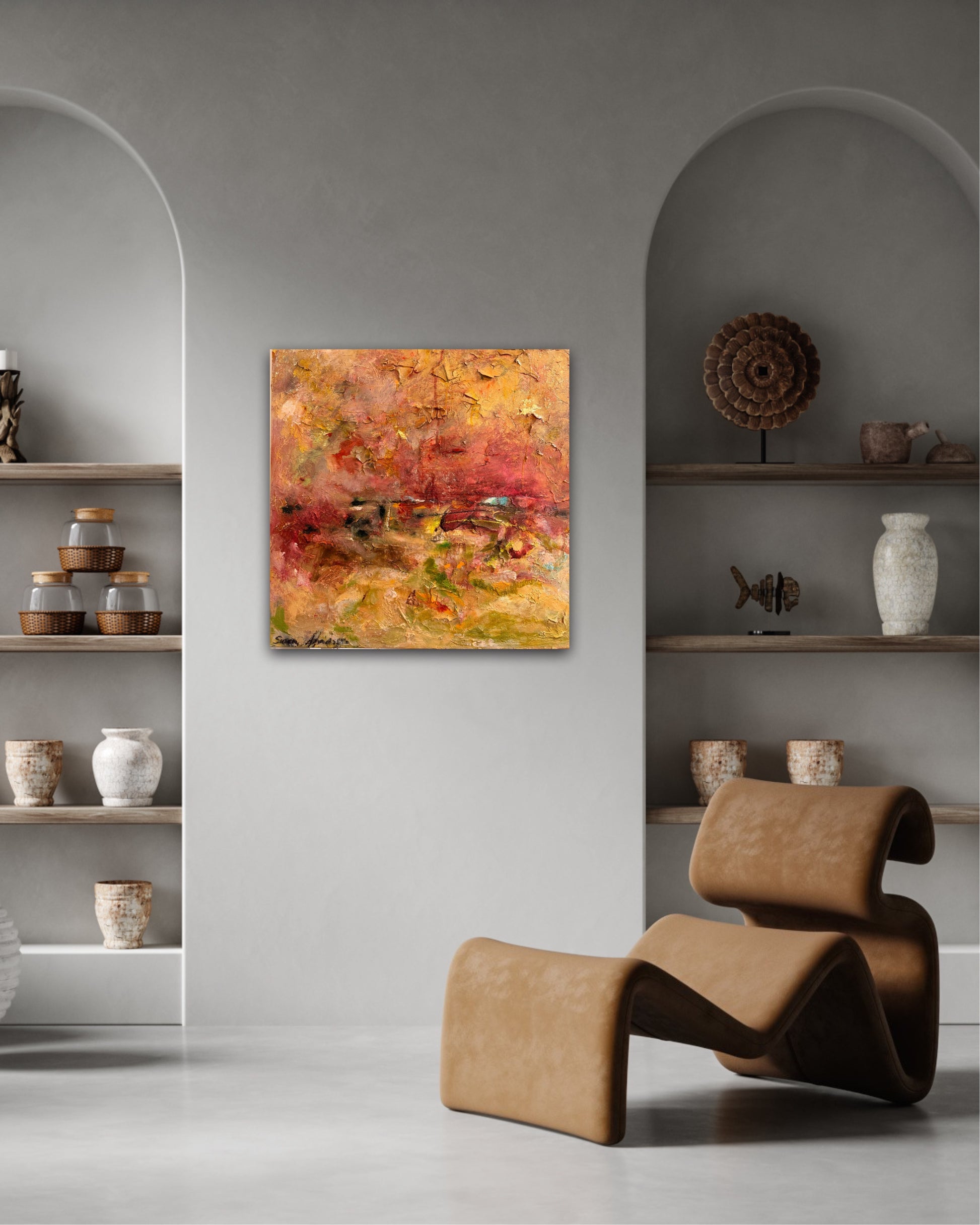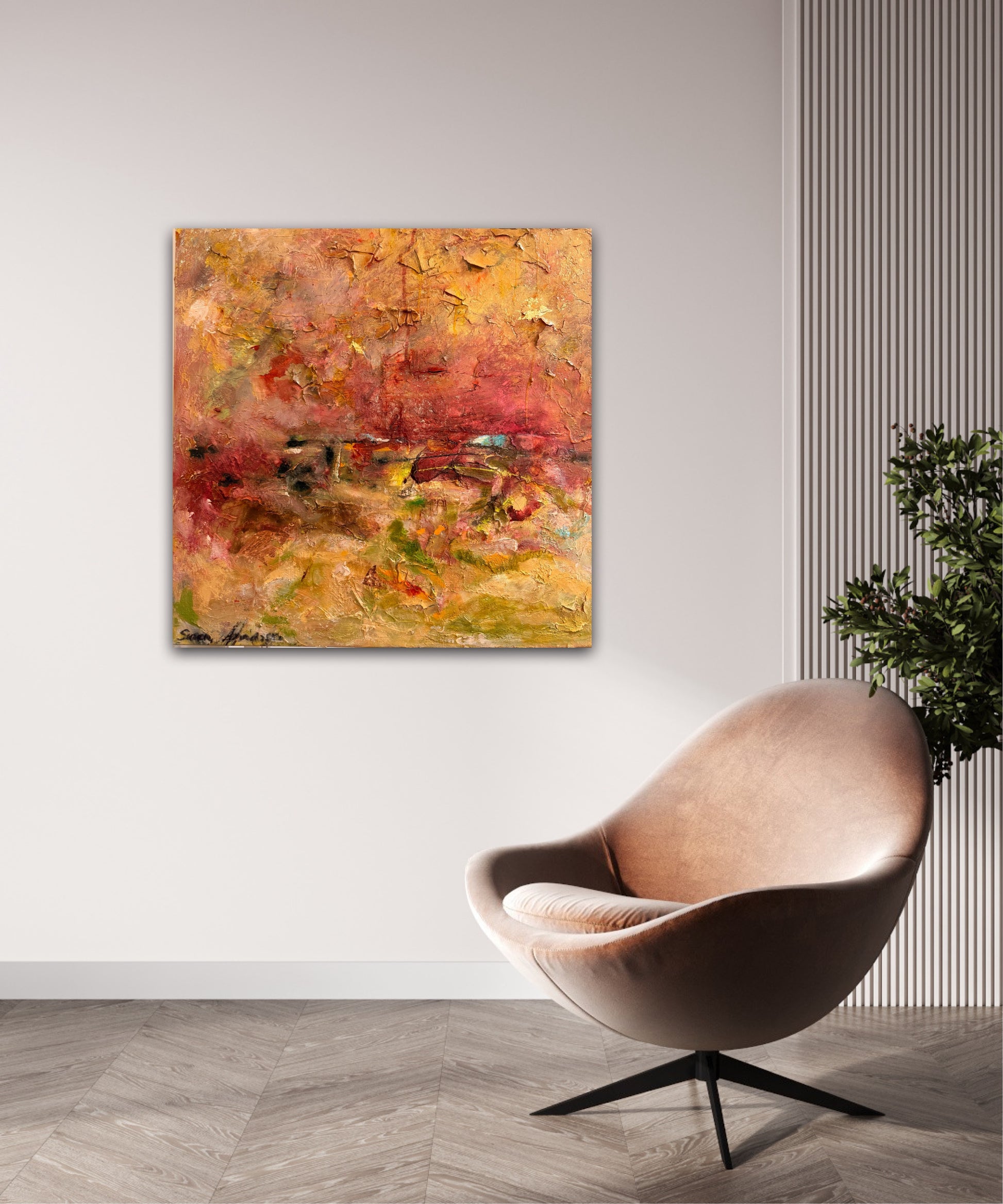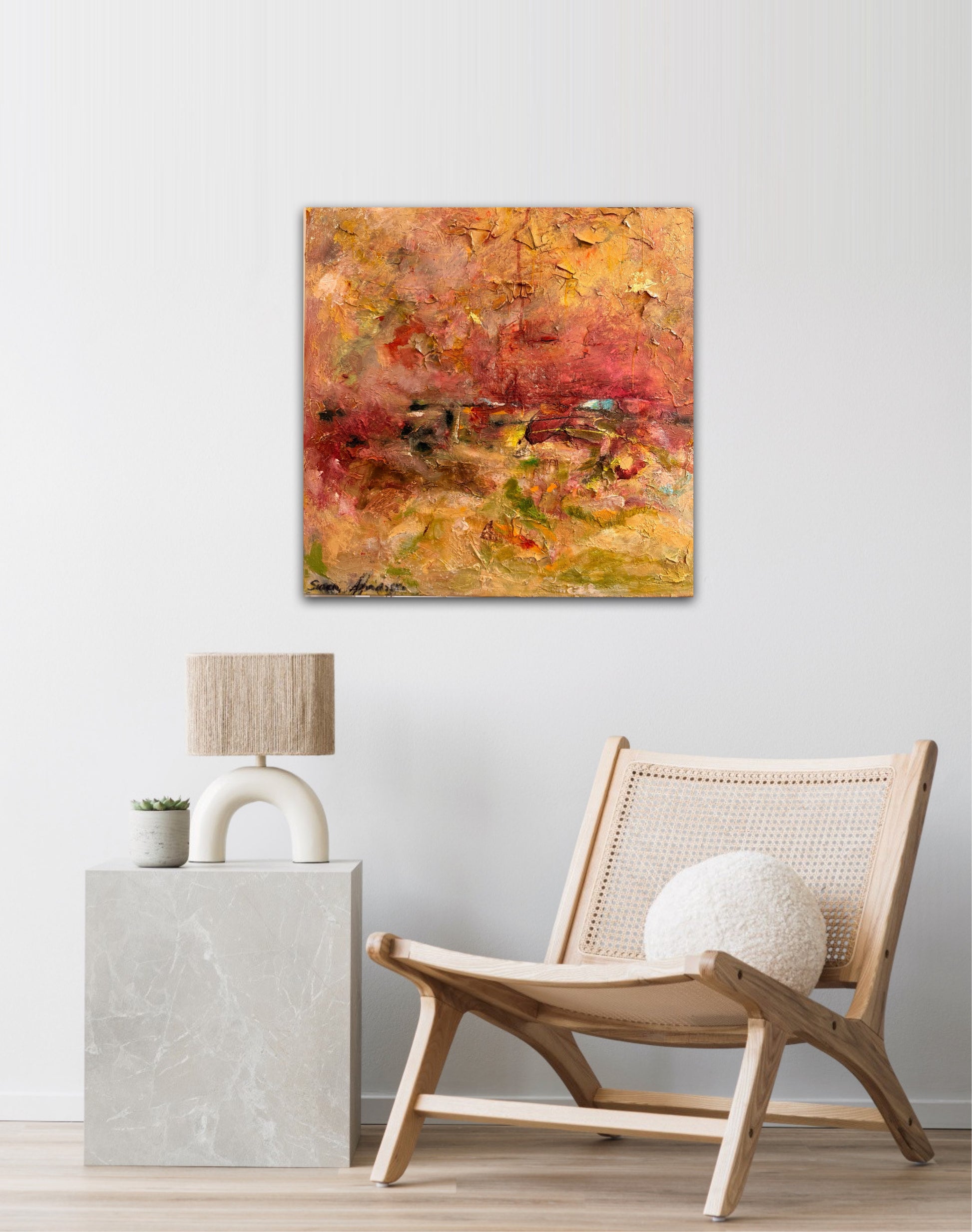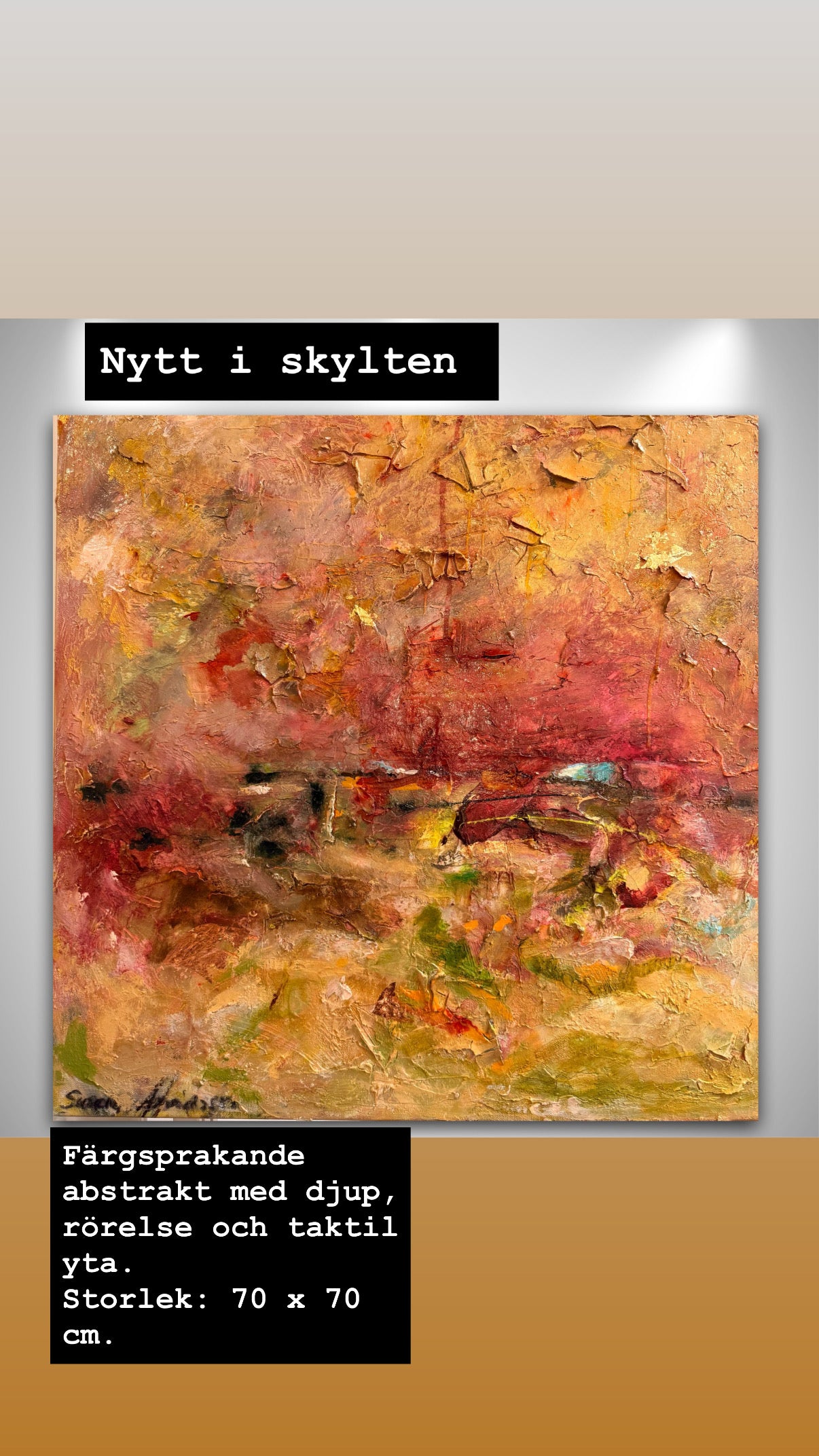 A day is born är en originalmålning där färg, rörelse och ljus möts i ett levande uttryck. Jag har arbetat i många lager med rik struktur som bygger djup och gör ytan nästan taktil – som ett landskap av känslor och energi.