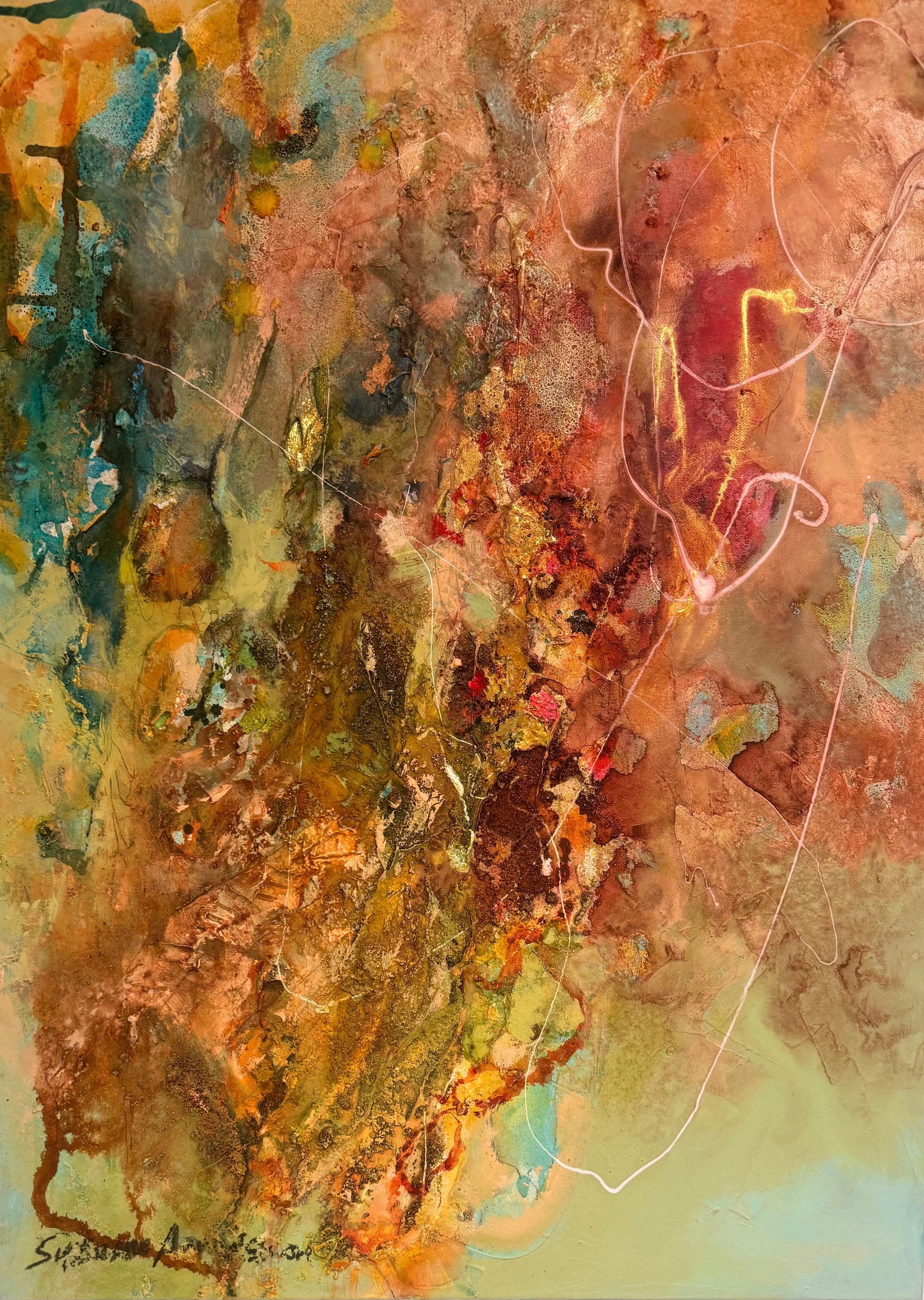 En abstrakt tavla som har fått titeln - Turn me as you want för det är exakt så du kan göra med denna målningen som är ett original som jag målat i en bred färgskala och med alla tänkbara olika färger för att få struktur och djup men också för att skapa något häftigt som tål att tittas på både på nära håll och på långt avstånd.
